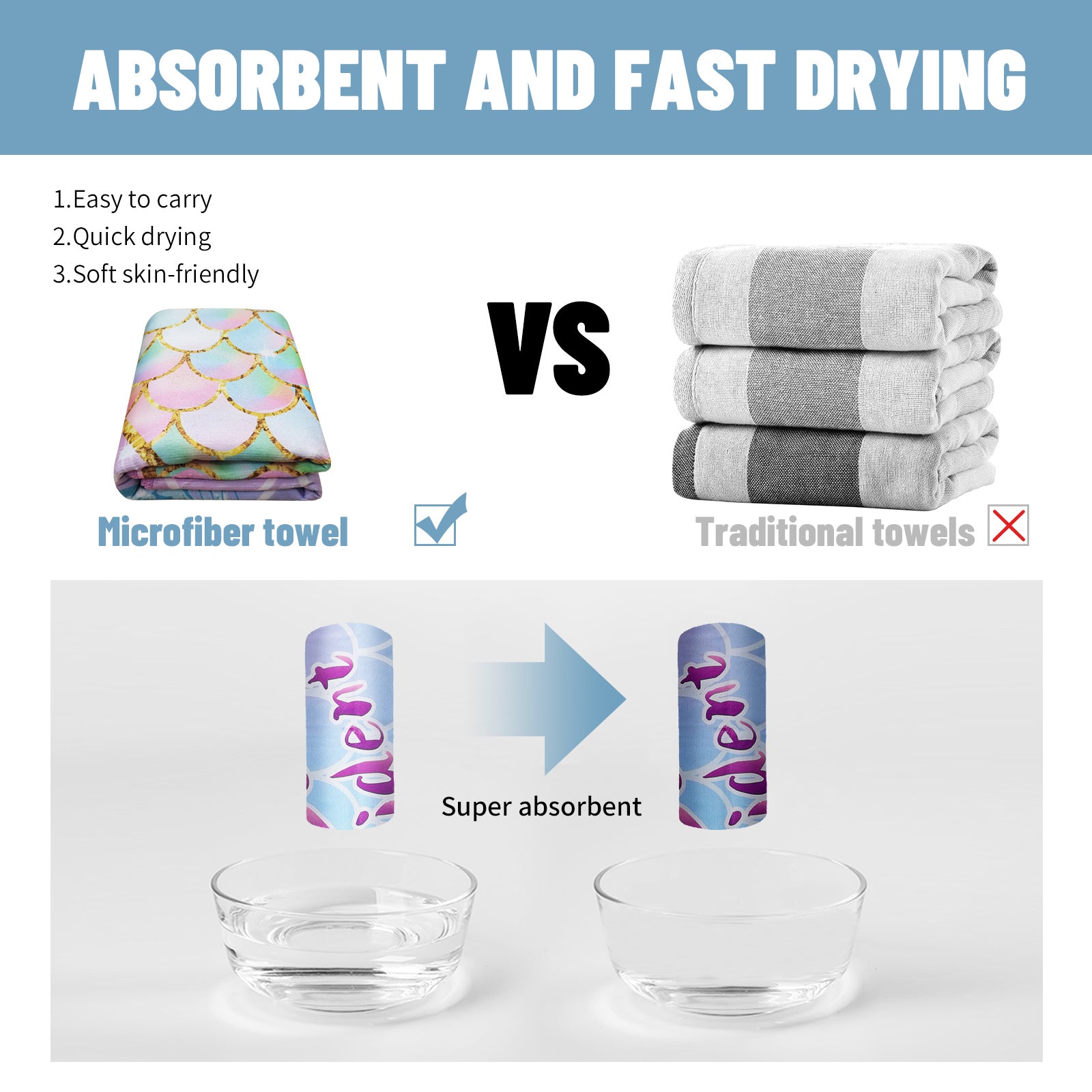 Efficient Absorption & Quick Dry: Smooth, thin, and strong microfiber dries faster than cotton, absorbing up to 3 times its weight in water.