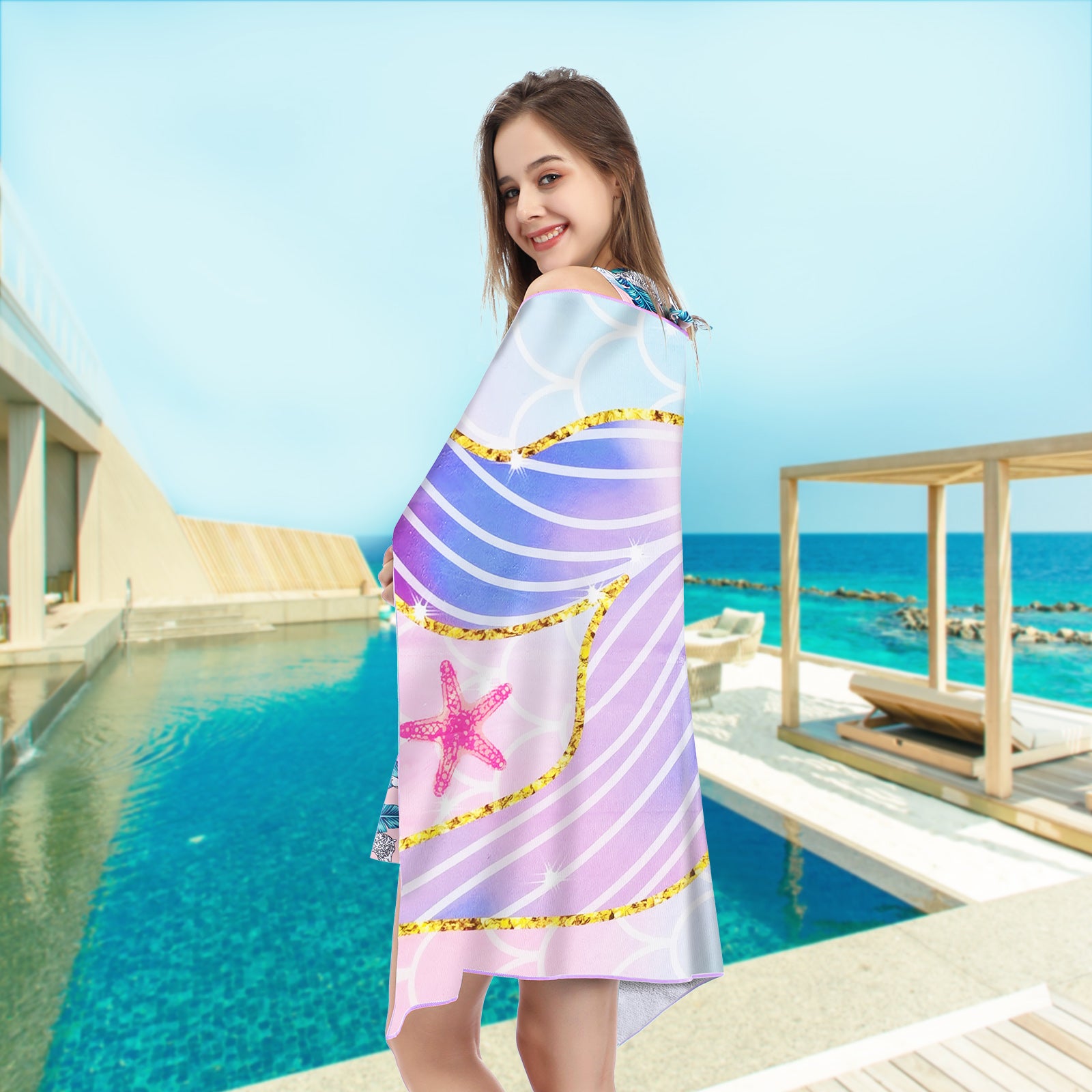 Large Oversized Beach Towel,Swimming Pool Towel Quick Dry,Soft Absorbent, Multifunctional Towel—Golden Mermaid