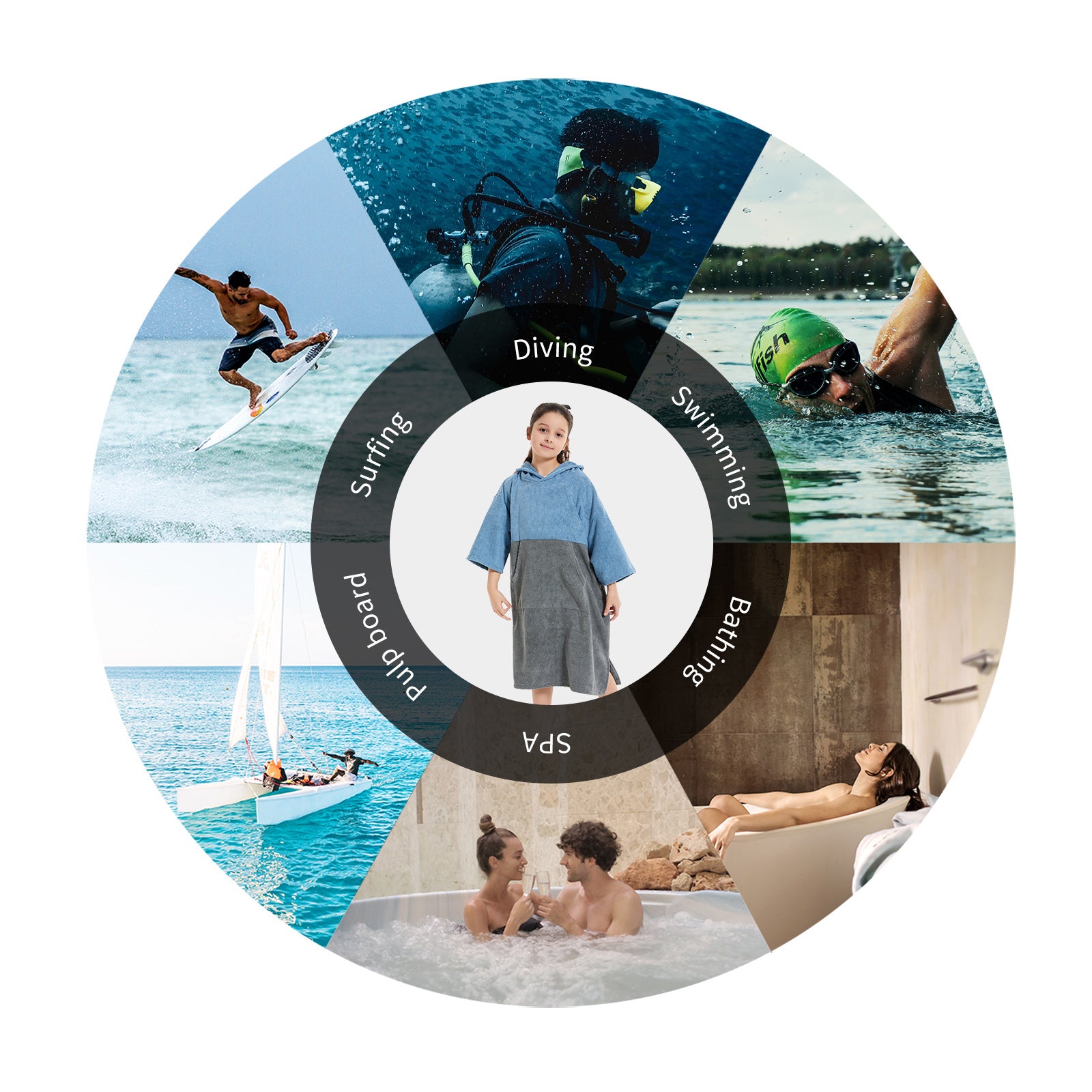 - QUICK DRY & WARM: This surf poncho is highly breathable and can evaporate water quickly. High-quality fabrics can keep you warm all year round.