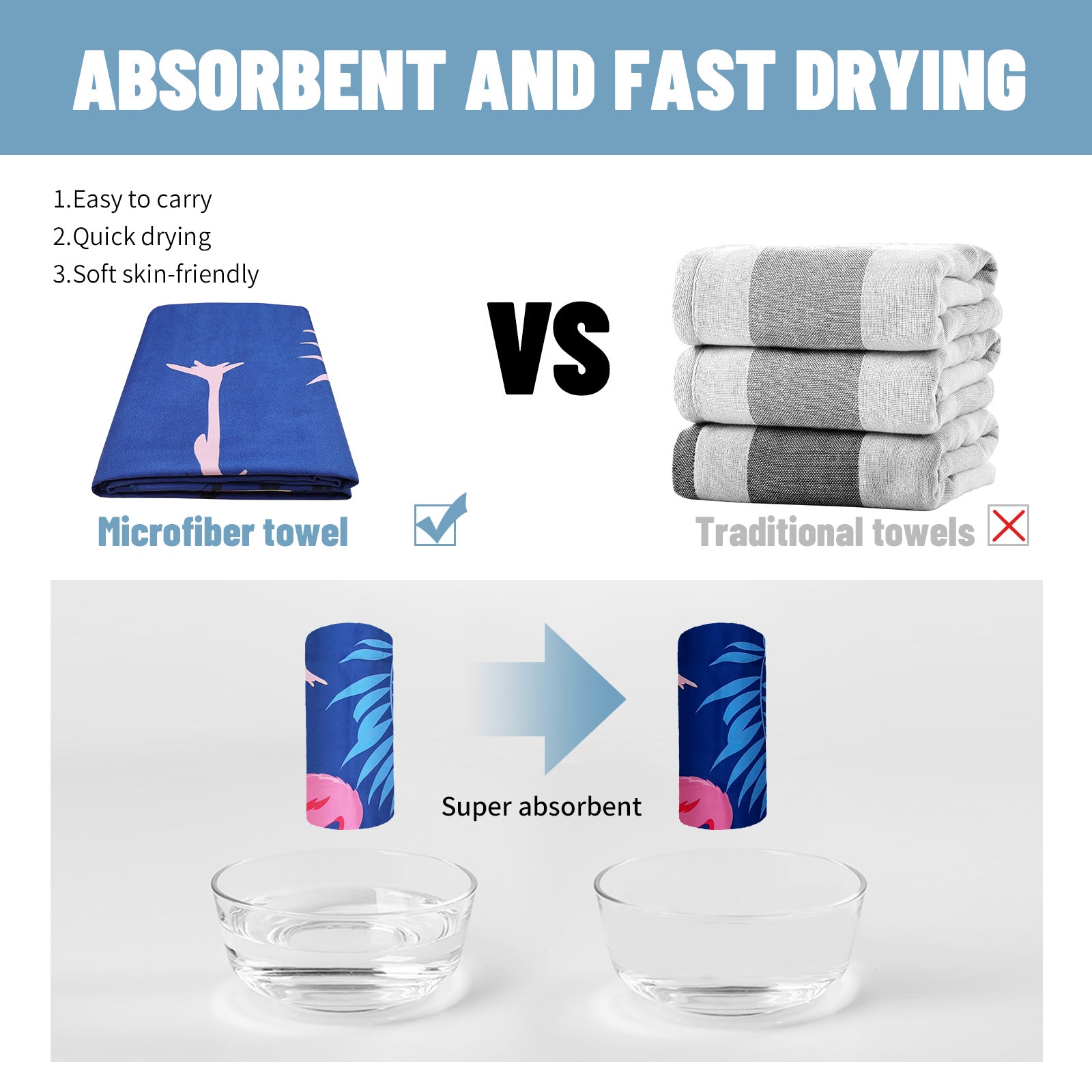 Efficient Absorption & Quick Dry: Smooth, thin, and strong microfiber dries faster than cotton, absorbing up to 3 times its weight in water.