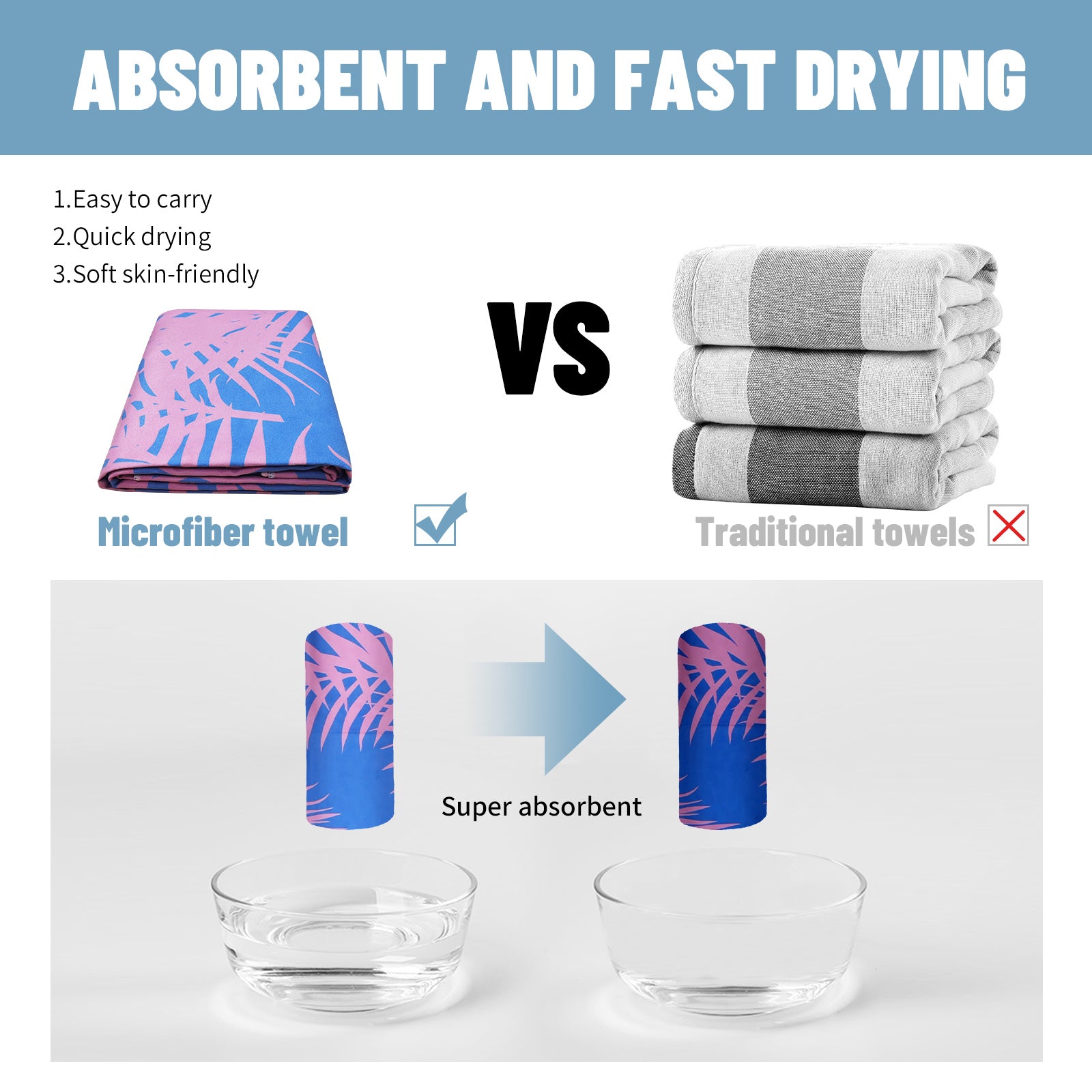 Efficient Absorption & Quick Dry: Smooth, thin, and strong microfiber dries faster than cotton, absorbing up to 3 times its weight in water.