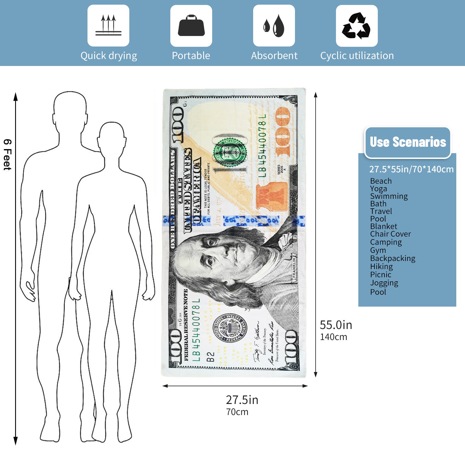 Large Oversized Beach Towel,Swimming Pool Towel Quick Dry, Soft Absorbent, Multifunctional Towel—Money