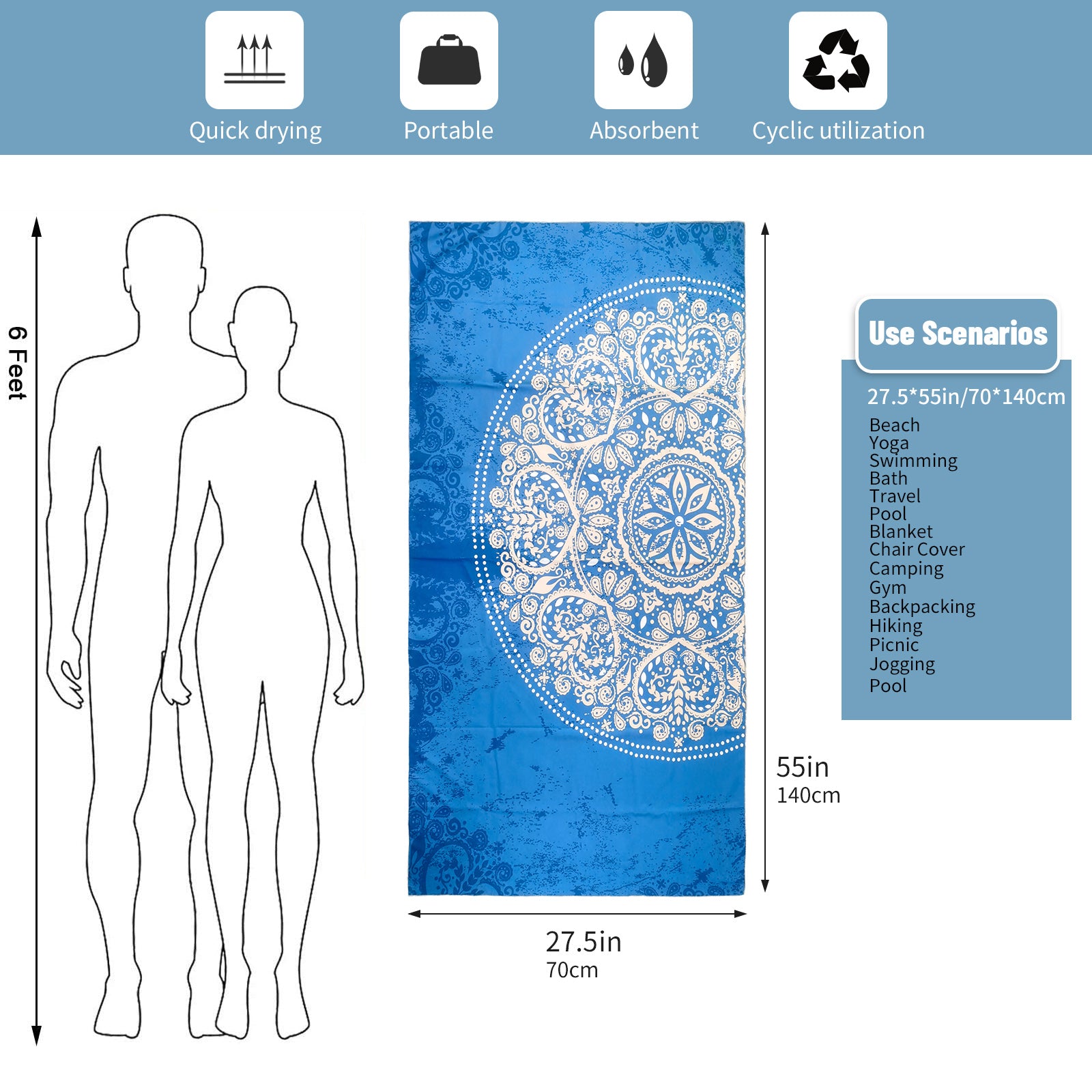 Easy Care & Travel-Friendly: Sand-resistant, machine washable, and lightweight, making it a convenient option for travel and outdoor adventures.