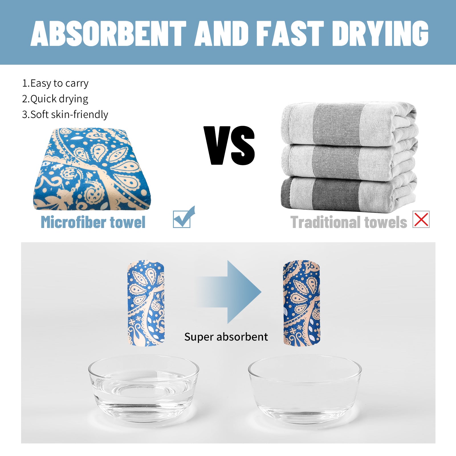 Efficient Absorption & Quick Dry: Smooth, thin, and strong microfiber dries faster than cotton, absorbing up to 3 times its weight in water.