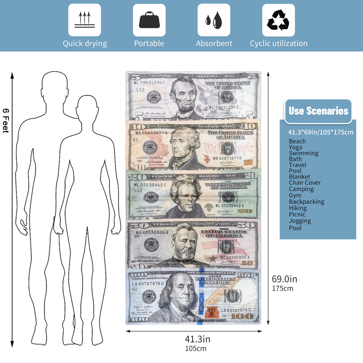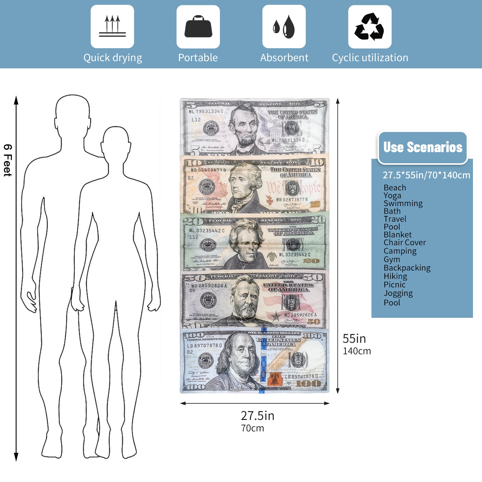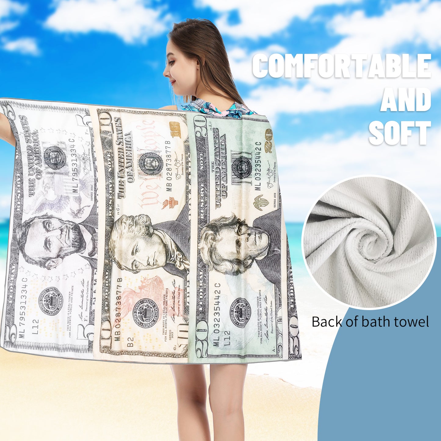 Large Oversized Beach Towel,Swimming Pool Towel Quick Dry, Soft Absorbent, Multifunctional Towel—Dollar