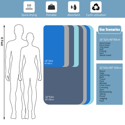 Fast Drying & Ultra Absorbent: The microfiber towel for camping is 4 to 6 times faster than usual towel, and microfiber fabric absorbs 3 to 6 times. The quick-drying fabric has an excellent performance in water absorption and diffusion, which can shorten the drying time of water. So this microfiber sport towel is great for gym, yoga, travel, camping, hiking,etc. The backpacking towel is so soft and ultra absorbent.